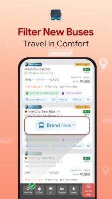 Ukiwa na AbhiBus, safari yako inakuwa rahisi na salama zaidi. Programu inatoa ufuatiliaji wa basi la moja kwa moja, hukuwezesha kujua mahali hasa basi lako lilipo kwa wakati halisi, pamoja na chaguo mbalimbali za uhifadhi kuanzia mabasi ya Volvo, AC, Sleeper, hadi yale ya kisasa ya umeme kama NueGo na FreshBus. Tunajivunia kutoa huduma kutoka kwa waendeshaji wengi maarufu kama vile Intrcity smartbus, VRL Travels, Zingbus, Orange Travels, na wengineo, kuhakikisha unapata chaguo bora zaidi zinazolingana na mahitaji yako. Iwe ni basi za Gurjarnagari za GSRTC au mabasi ya Amaravathi ya APSRTC, AbhiBus inakuhakikishia uhusiano mpana na usiotetereka wa usafiri.