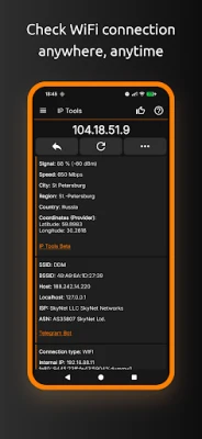 Kwa kiolesura chake rahisi na cha kirafiki, IP Tools inakupa uwezo wa kupata taarifa za kina kuhusu mtandao wako kwa sekunde chache. Fichua anwani yako ya ndani, nje, au ya kimataifa ("my IP"), jina la Wi-Fi (SSID), BSSID, DNS, muda wa 'ping', kasi ya Wi-Fi, nguvu ya ishara, anwani ya lango (gateway), mask, na hata kuratibu za kijiografia za mtoa huduma wako wa intaneti (latitude na longitude). Pata maarifa muhimu kupitia WHOIS na takwimu za Netstat, zote zikikupa picha kamili ya hali ya muunganisho wako.