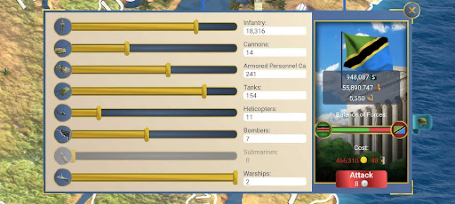 Katika masuala ya kimataifa, sauti yako itabadili mizania ya siasa za dunia. Jijumuishe kikamilifu katika diplomasia; jenga balozi, weka vikwazo, saini mikataba ya kutovamiana na ya ulinzi. Unaweza pia kusaidia uhuru wa mataifa mengine, kutoa misaada ya maeneo, au hata kuomba usaidizi. Piga kura kwenye Umoja wa Mataifa, anzisha vikwazo vya kiuchumi, kataza vita, au uweke marufuku ya silaha na uzalishaji. Upande wa kijeshi, agiza jeshi lako la watoto wachanga, mizinga, magari ya kivita, helikopta, mabomu, nyambizi, na meli za kivita kushambulia. Vamia na teka nchi, anzisha mapinduzi, tuma majasusi, au hata zindua vita vya nyuklia. Jeshi lako liko tayari kuharibu maadui kwenye uwanja wa vita!