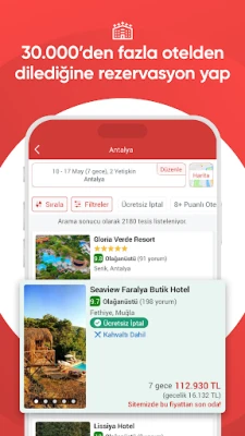 Obilet inakuwezesha kuchunguza mamia ya chaguzi za usafiri, ikijumuisha tiketi za ndege na basi kutoka kwa kampuni bora kama vile Türk Hava Yolları, Pegasus, Kamil Koç, na Metro Turizm. Aidha, utapata huduma za ukodishaji magari kutoka Garenta, Sixt, na Green Motion, pamoja na hoteli za kifahari kote Uturuki. Kulinganisha bei na huduma kutoka kwa watoa huduma hawa wote ni rahisi mno. Chagua ofa inayokuvutia zaidi na ukamilishe ununuzi wako kwa kutumia kadi yako ya benki au ya mkopo kwa usalama kamili. Obilet inahakikisha unapata thamani bora zaidi kwa pesa yako, ikikupa fursa ya kupanga safari zenye faida.