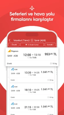 Pata tiketi za ndege, basi, na feri, pia kodi gari na hifadhi hoteli. Obilet inakurahisishia kupata huduma hizi zote muhimu za safari kwa haraka na kwa urahisi, zikiwa zote mahali pamoja kwa kubofya mara moja.
