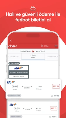 Furahia amani ya akili ukijua kuwa timu yetu ya usaidizi kwa wateja inapatikana saa 24 kwa siku, siku saba kwa wiki. Iwe unahitaji usaidizi wa haraka kupitia gumzo la moja kwa moja ndani ya programu, au unapendelea kuwasiliana na mawakala wetu kupitia simu, Obilet inahakikisha unapata suluhisho kwa wakati wowote. Kila muamala kupitia Obilet umelindwa na mfumo thabiti wa malipo, ukikupa uhakika wa ununuzi salama na wa haraka. Zaidi ya hayo, Obilet inatoa uhuru wa kughairi tiketi zako za basi au ndege hadi saa 24 kabla ya safari, ukipokea marejesho kamili bila masharti yoyote. Hata kwa safari za baharini kupitia feri zinazoelekea Istanbul, Yalova, Bursa, na Balıkesir, Obilet ipo kando yako, ikifanya kila hatua ya safari yako kuwa rahisi na yenye furaha.